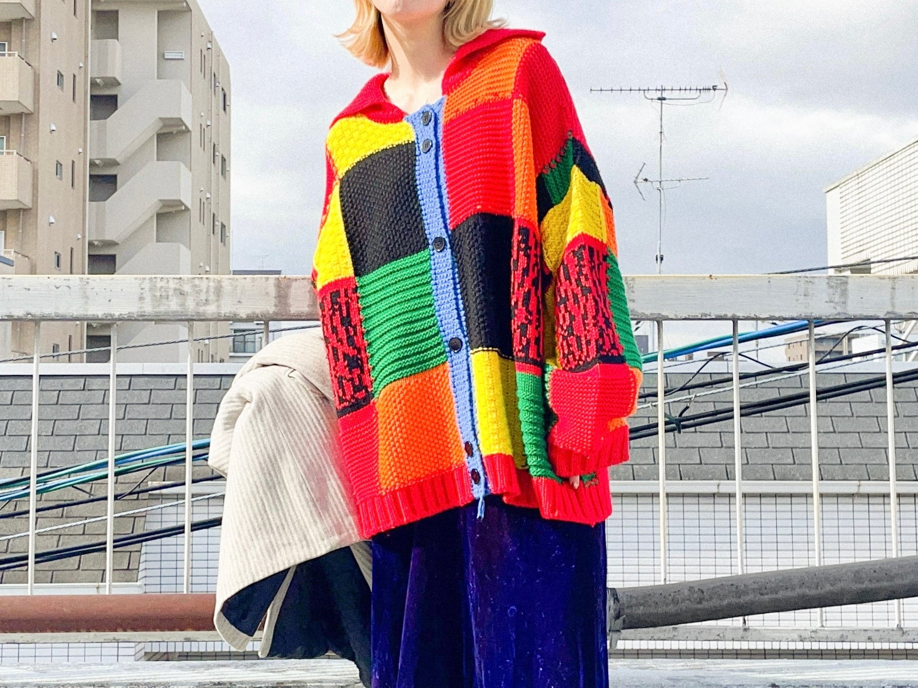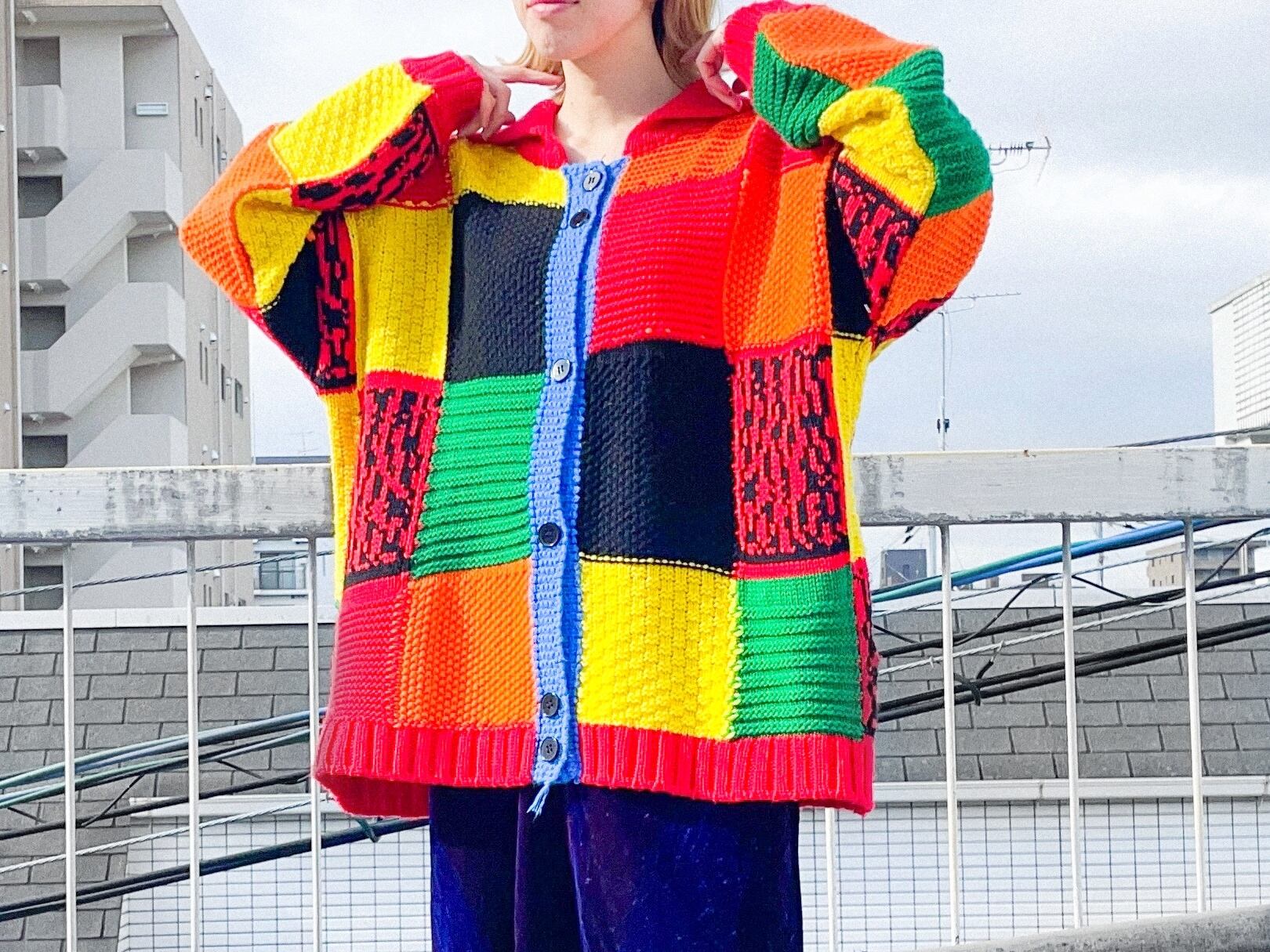 Multi Color Hand Knit Cardigan