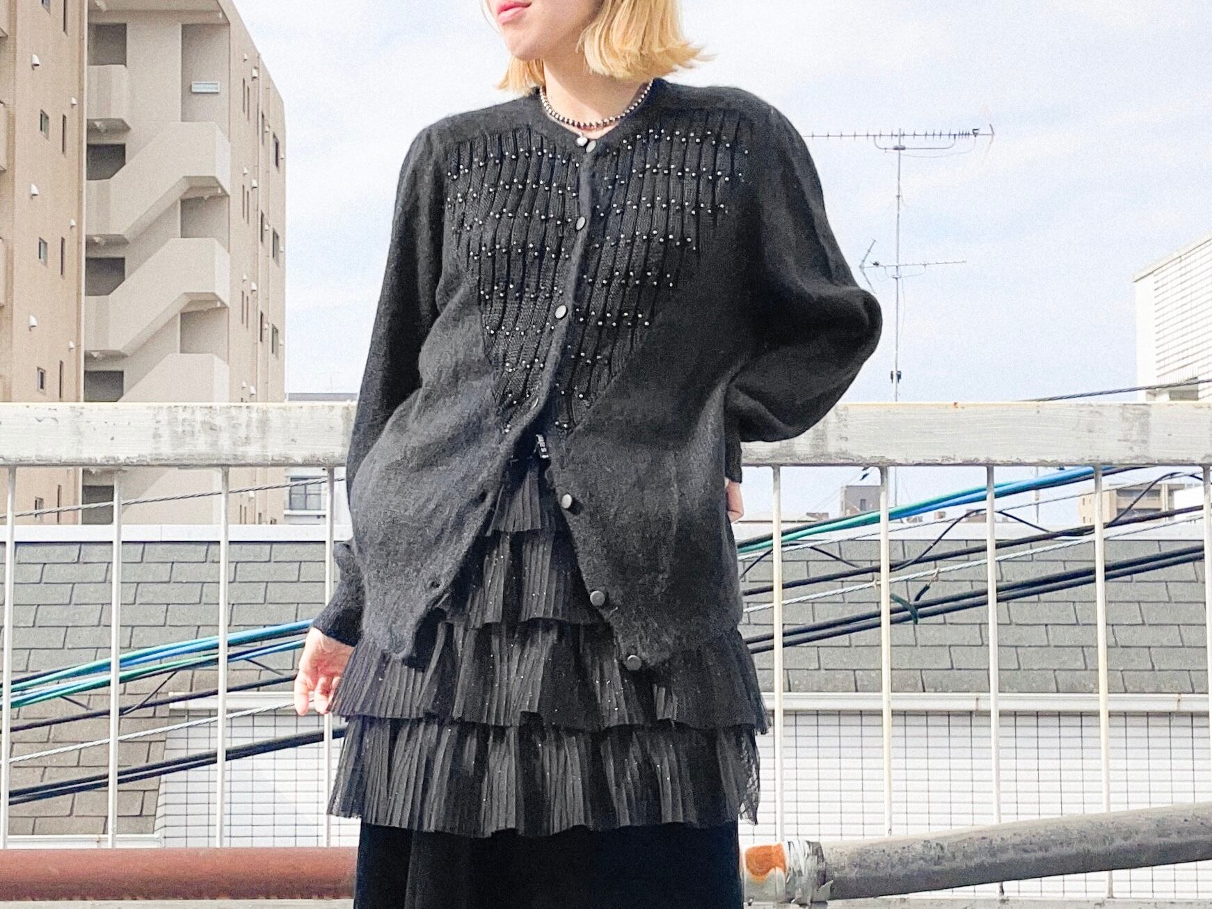 ビーズの装飾でハートが描かれたキュートなニットカーディガンです